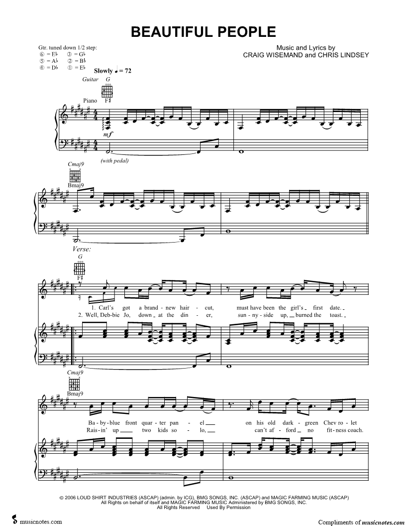 Musicnotes sells a wide variety of digital sheet music products including Singer Pros, Beginner Notes, Choral music, Piano Solos, Lead Sheets, Piano/Vocal/Guitar, Solo and Accompaniment, and fretted instrument tablature.