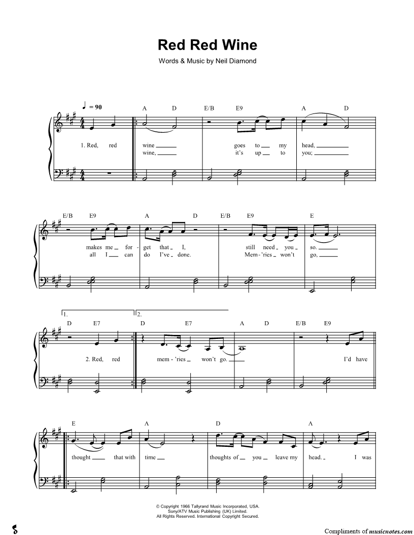 Red, red wine goes to my head, makes me forget that I, still need you so. |