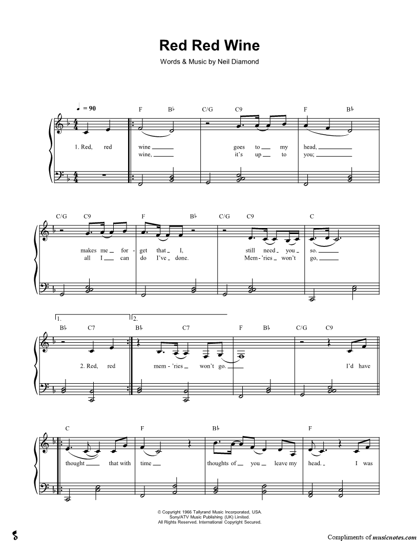 Red, red wine goes to my head, makes me forget that I, still need you so. |