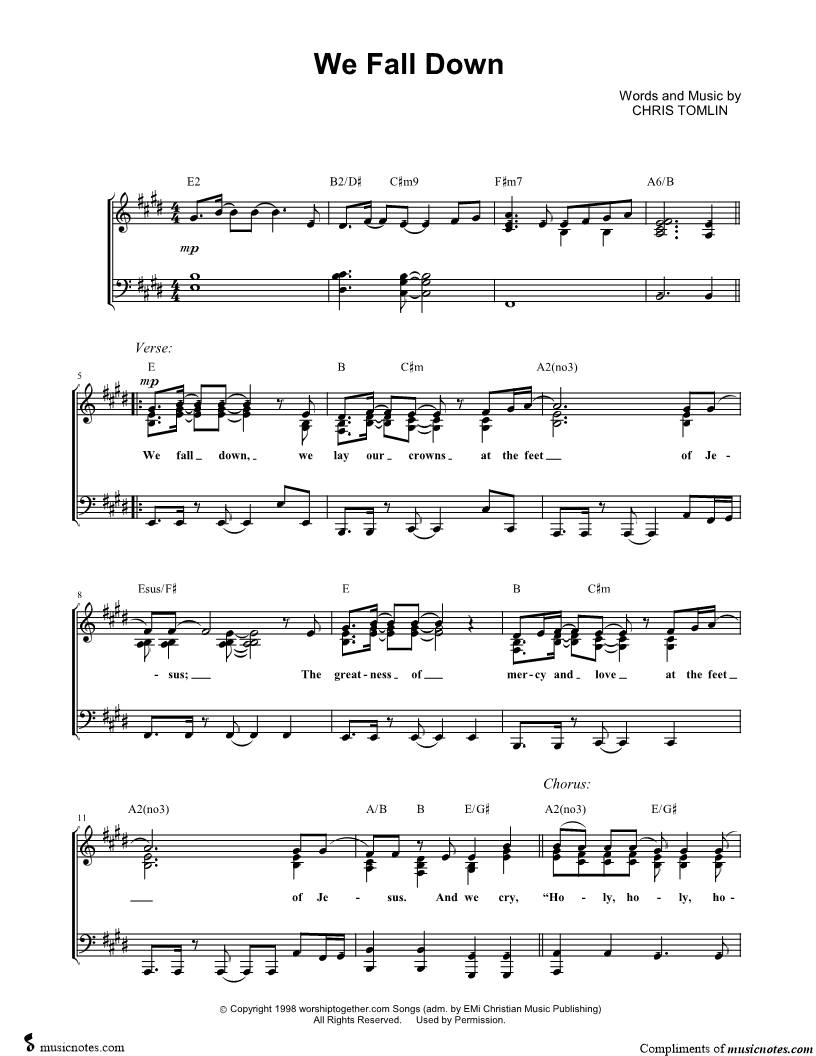 We fall down, we lay our crowns at the feet of Jesus; |
