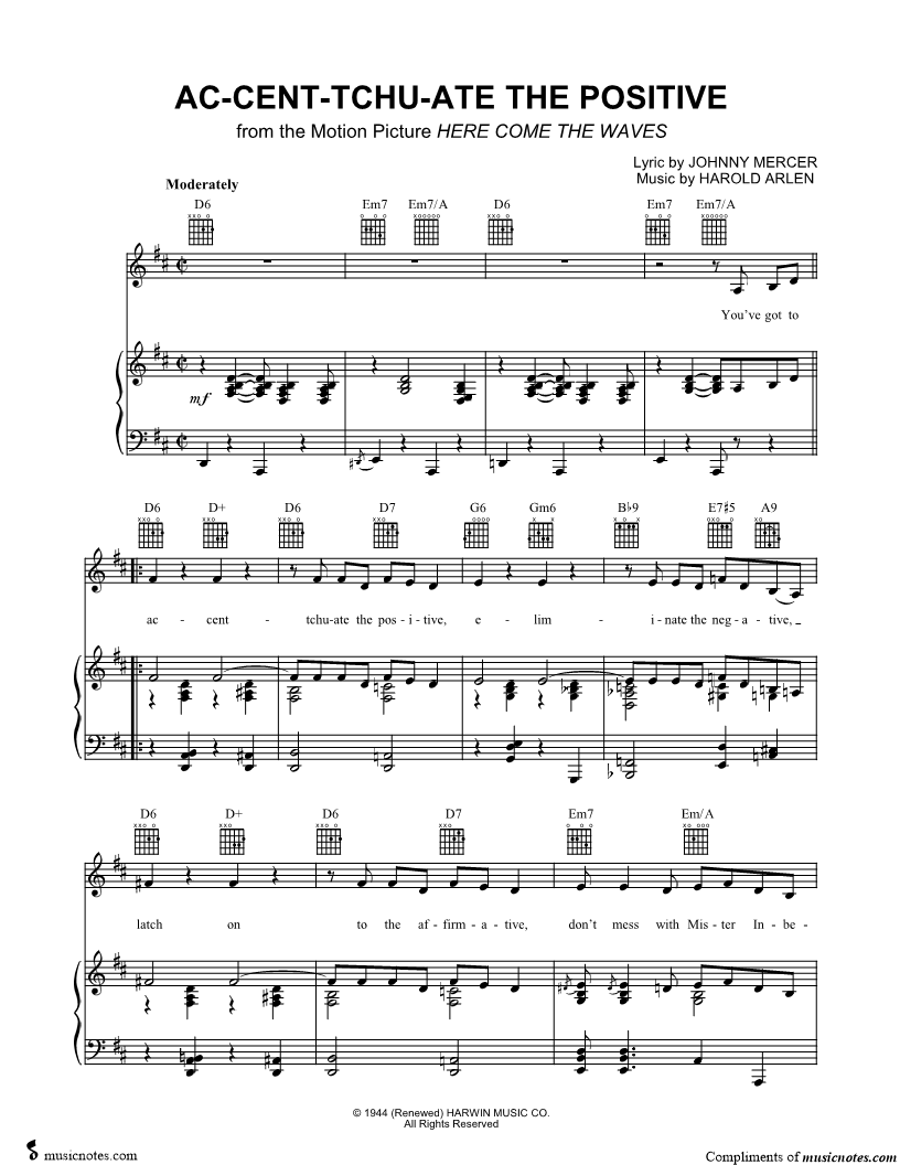 You've got to acc-ent-tchuate the positive, eliminate the negative, latch on to the affirmative, don't mess with Mister In-between. |