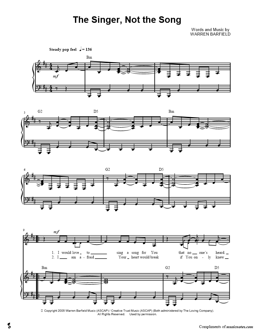 Musicnotes sells a wide variety of digital sheet music products including Singer Pros, Beginner Notes, Choral music, Piano Solos, Lead Sheets, Piano/Vocal/Guitar, Solo and Accompaniment, and fretted instrument tablature.