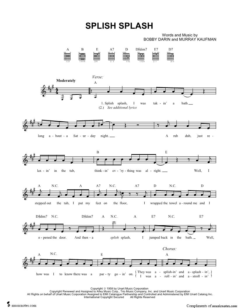 Splish splash, I was takin' a bath long about a Saturday night. |