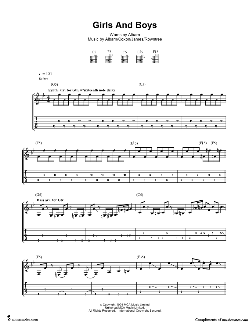 Guitar TAB Guitar/Vocal |