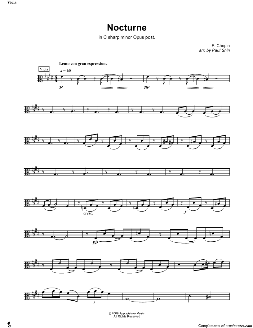 Nocturne in C# Minor, Opus post. for String Quartet - Viola |