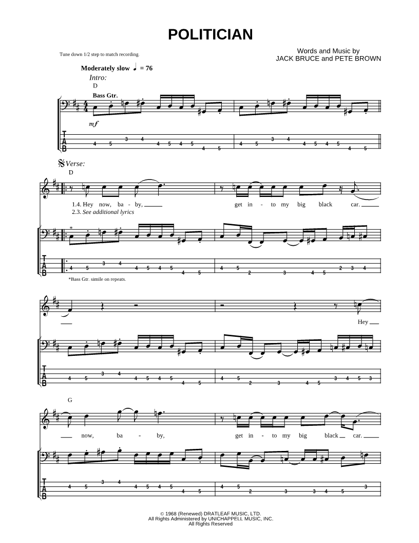 Bass Tab Bass/Vocal |