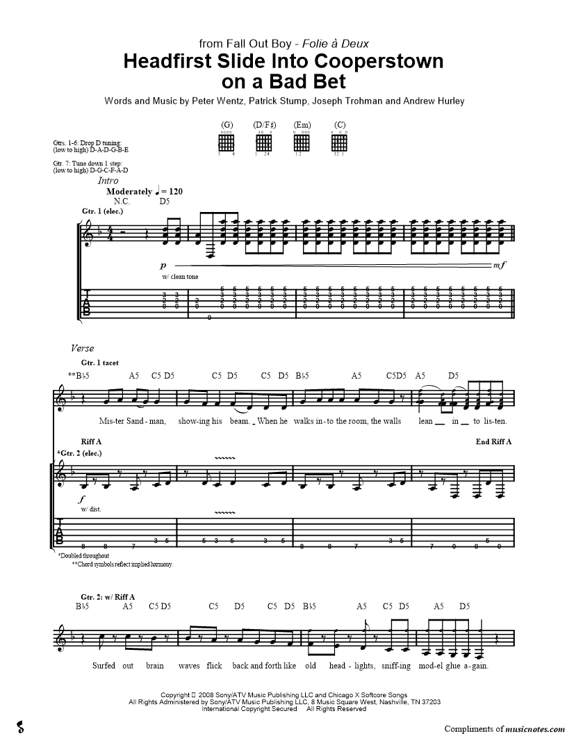 Guitar Tab Guitar/Vocal |