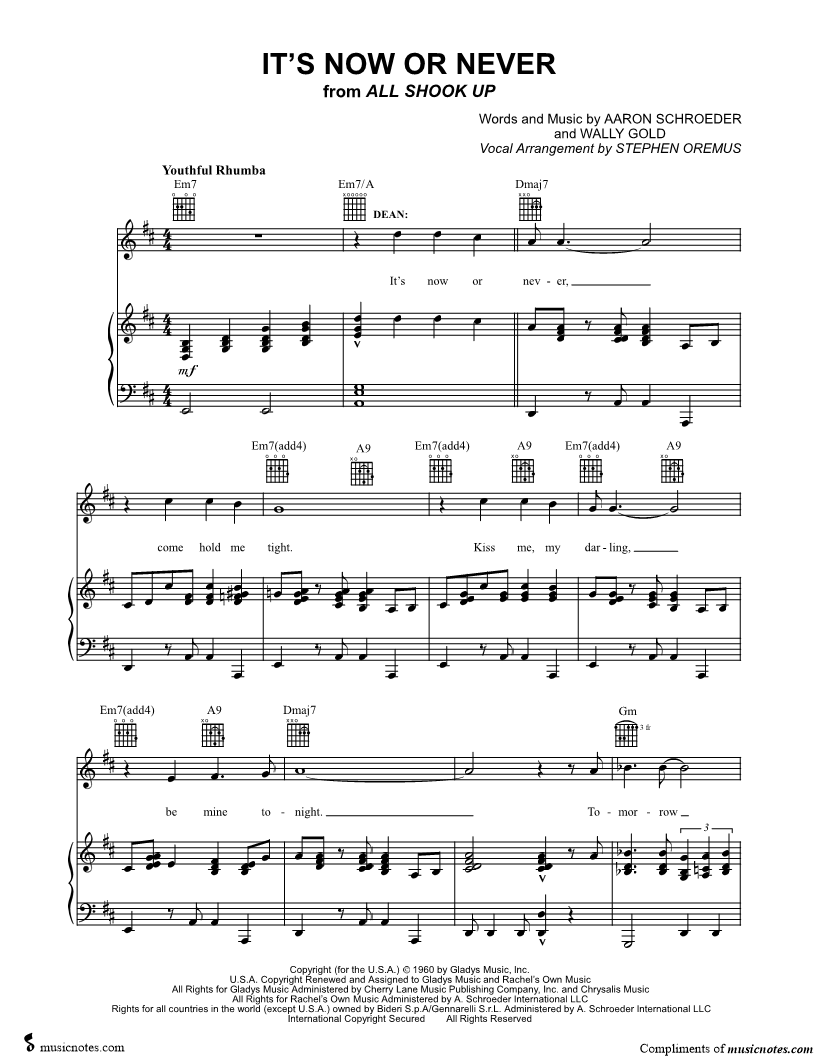 "A very useful piano score of this Elvis song who in reality is O sole mio"