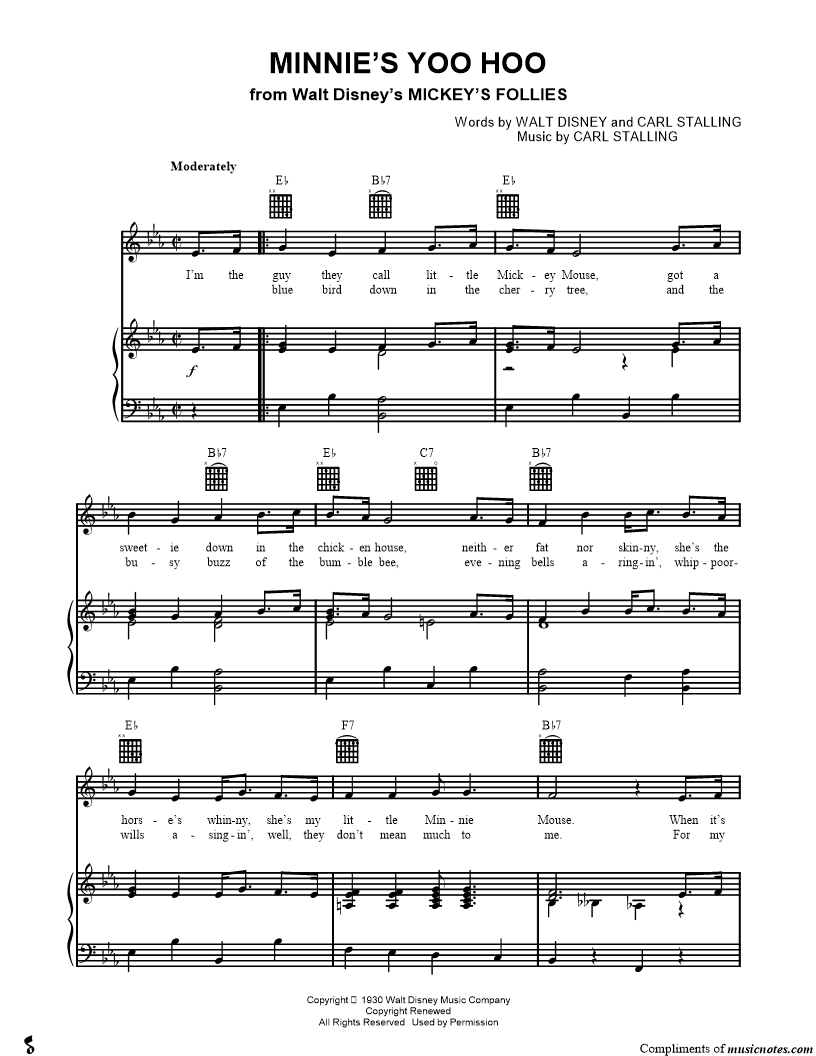 I'm the guy they call little Mickey Mouse, got a sweetie down in the chicken house, neither fat nor skinny, she's the horse's whinny, she's my little Minnie Mouse. |