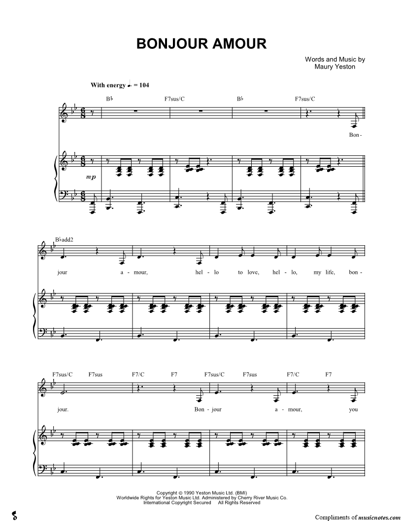 Bonjour amour, hello to love, hello, my life, bonjour. |