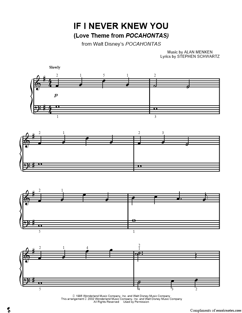 If I Never Knew You (Love Theme from Pocahontas) |