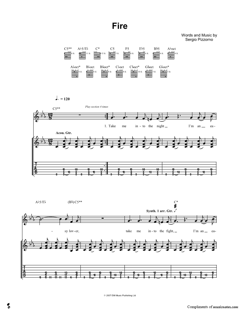 Voice, range: E4-G5 Guitar 1 or Acoustic Guitar Guitar 2 or Electric Guitar Guitar 3 or Electric Guitar Guitar 4 Guitar 5 Backup Vocals | |