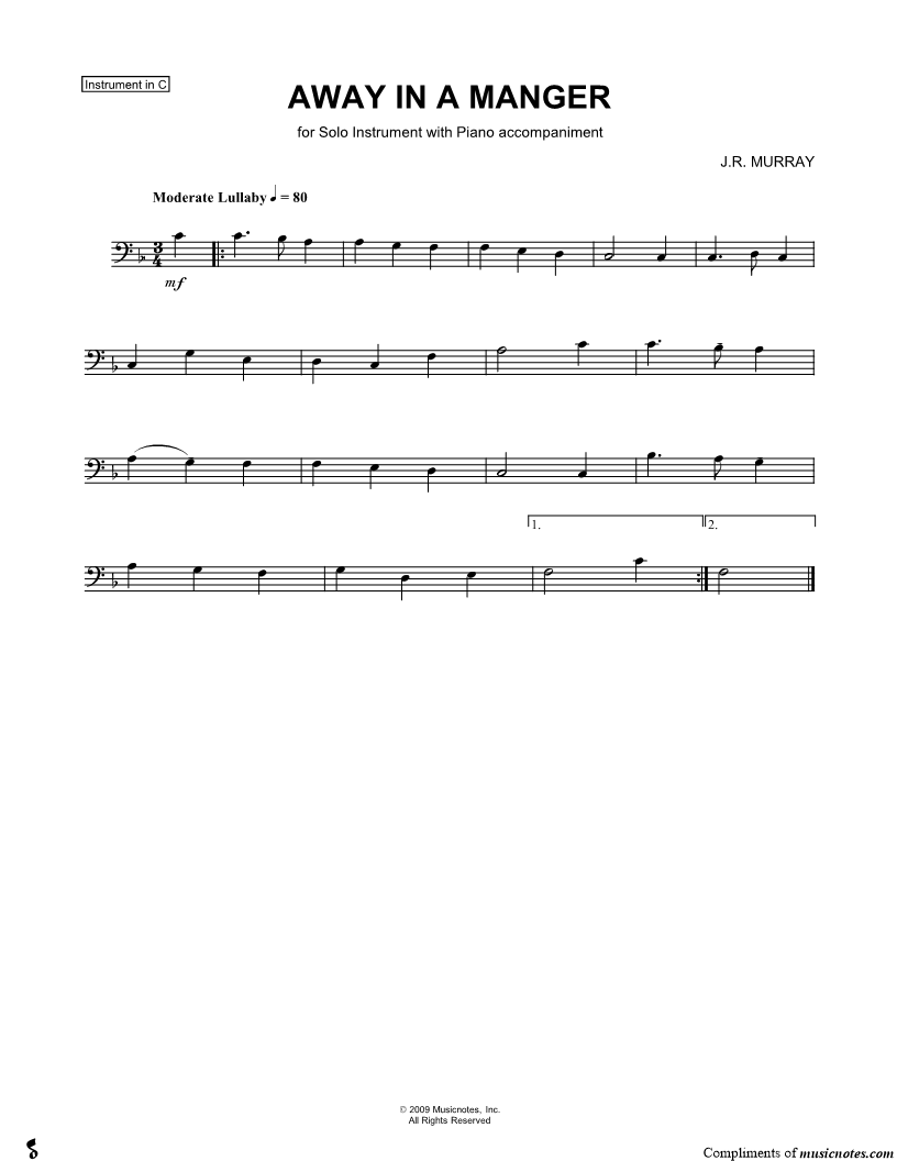 Bass Clef Instrument, range: C3-C4 (Cello, Double Bass, Trombone, Bassoon or Baritone Horn) | |