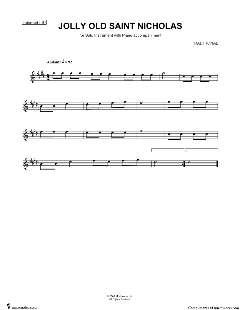 Jolly Old Saint Nicholas - Eb Instrument & Piano