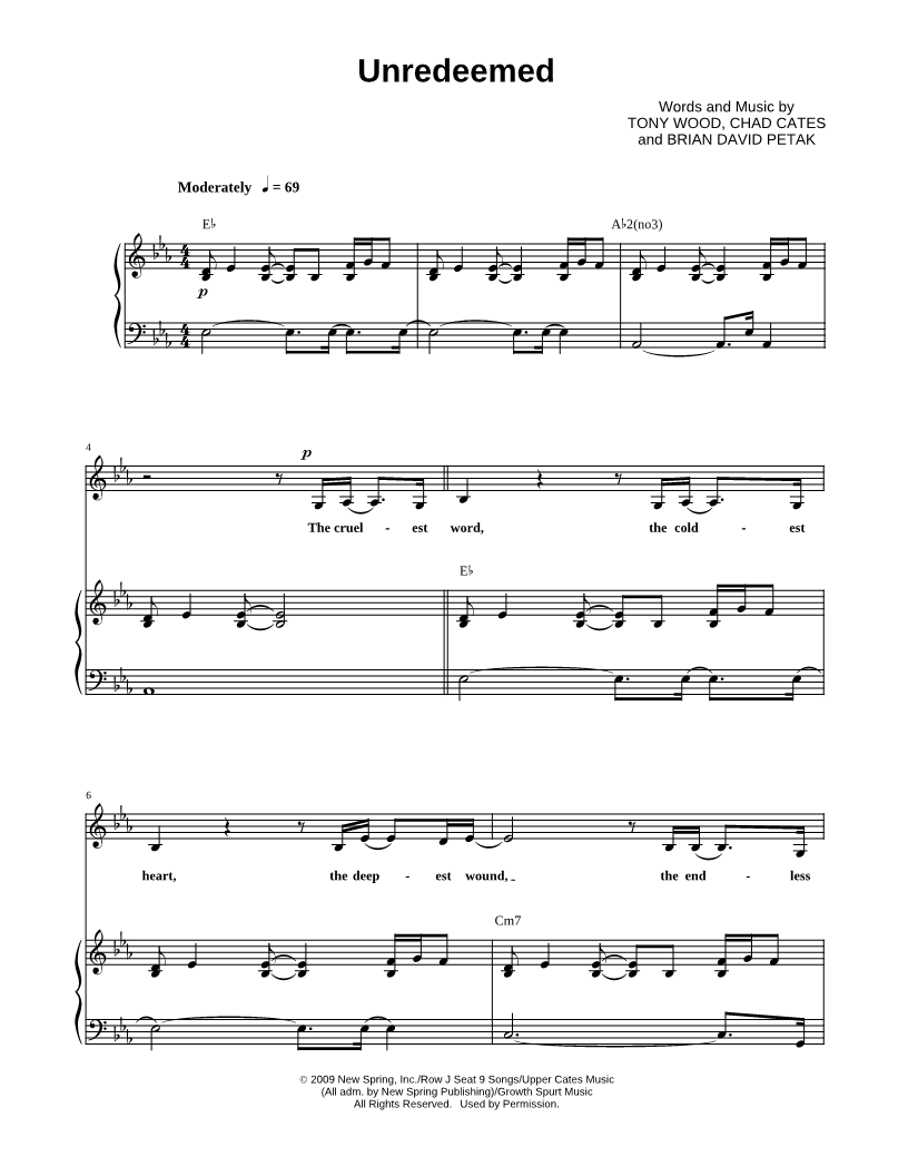 "This beautiful arrangement of "Unredeemed" is perfect and true to the arrangement Selah si..." Read reviews