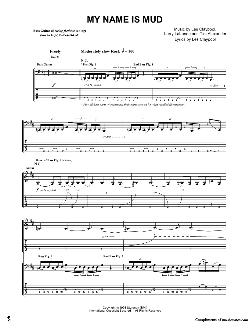 Bass Tab Guitar TAB Guitar/Vocal |