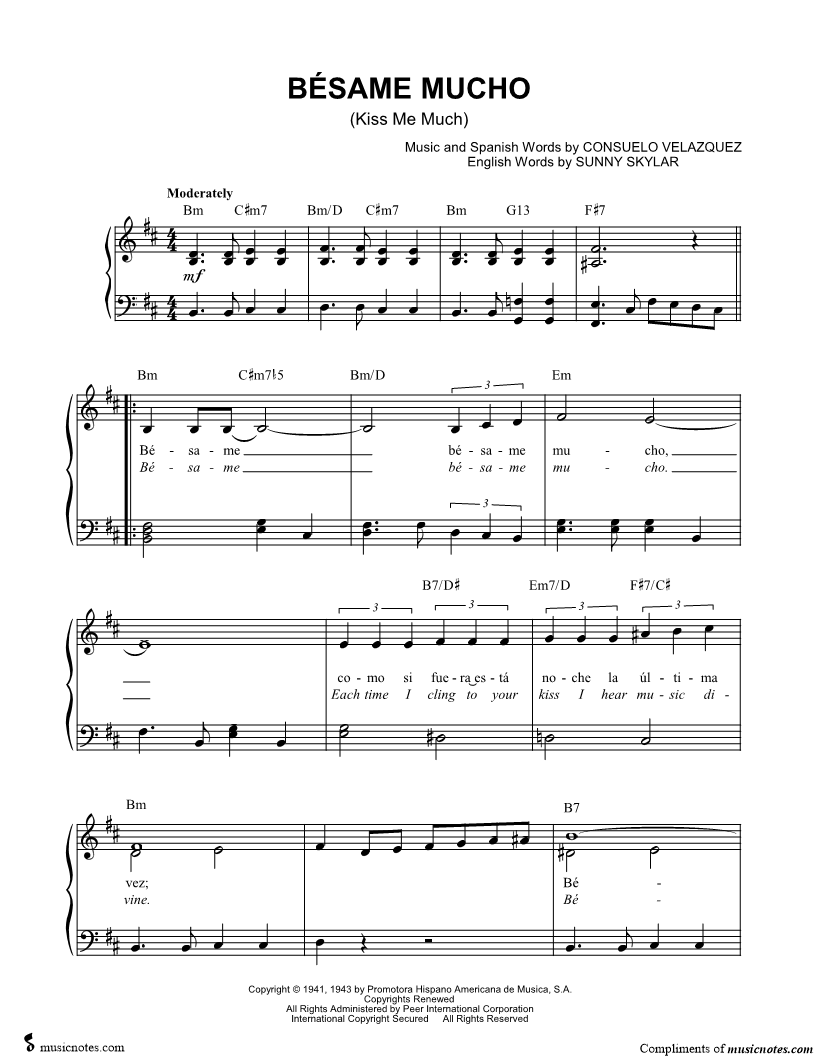 Besame besame mucho, como si fuera esta\' noche la u\'ltima vez; |