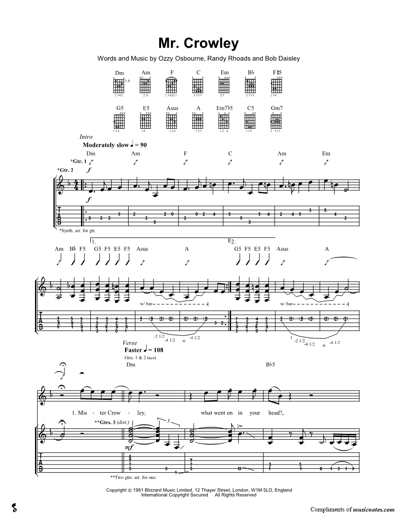 Guitar TAB Guitar/Vocal |