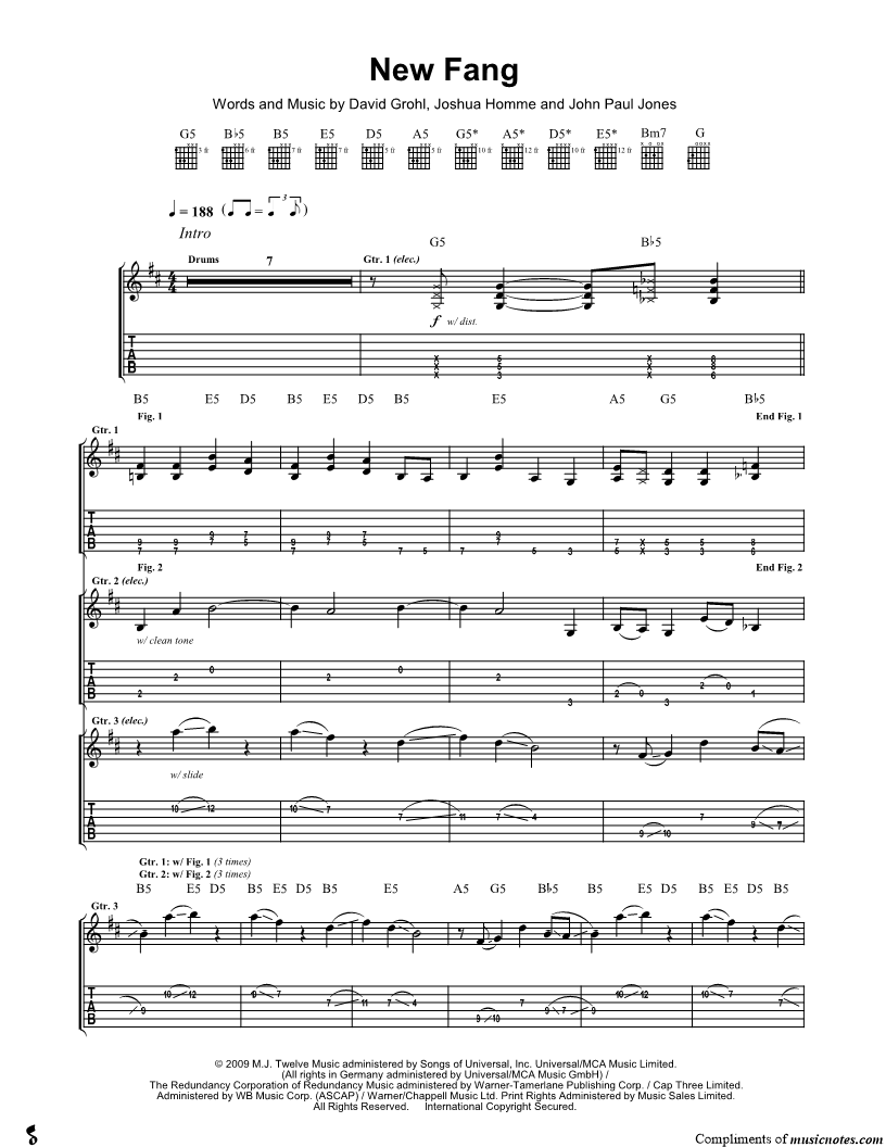 Voice, range: E4-B5 Guitar 1 Guitar 2 Guitar 3 Guitar 4 Guitar 5 | |