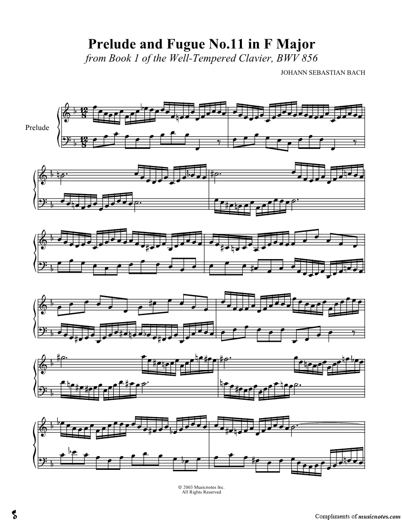 Prelude and Fugue No.11 in F Major, BWV 856 |