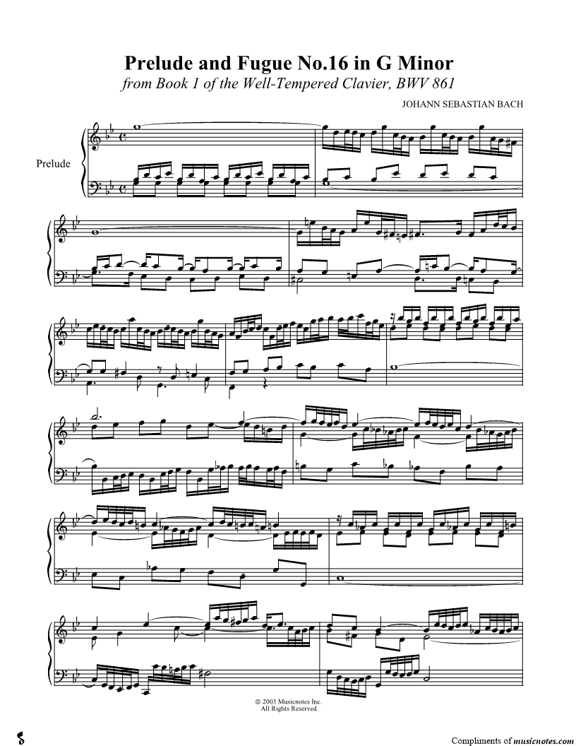 Prelude and Fugue No.16 in G Minor, BWV 861 |