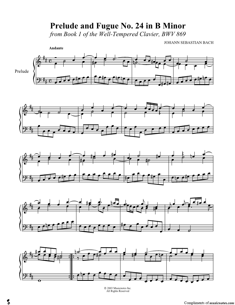 Prelude and Fugue No. 24 in B Minor, BWV 869 |