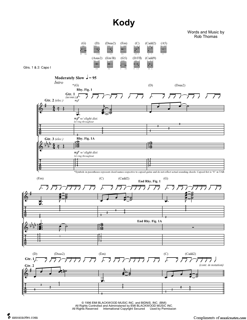 Voice, range: C4-F5 Guitar 1, range: F3-C6 Guitar 2 Guitar 3 Guitar 4 Strum | |