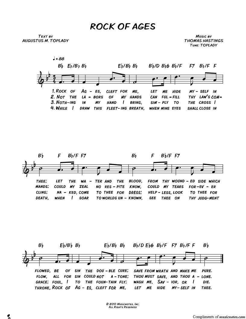 Rock of Ages, cleft for me, let me hide myself in thee; let the water and the blood, from thy wounded side which flowed, be of sin the double cure; save from wrath and make me pure. |