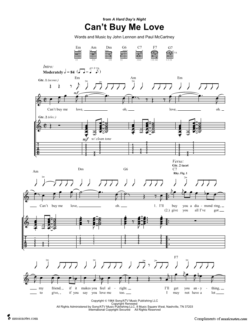 Can't buy me love, oh, love, oh. |