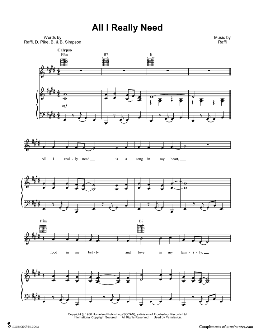 All I really need is a song in my heart, food in my belly and love in my family. |