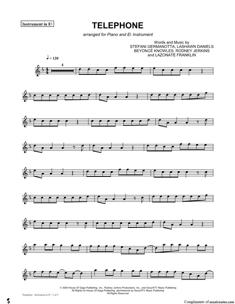 Eb Instrument, range: A4-A5 (Alto Saxophone or Baritone Saxophone) | |