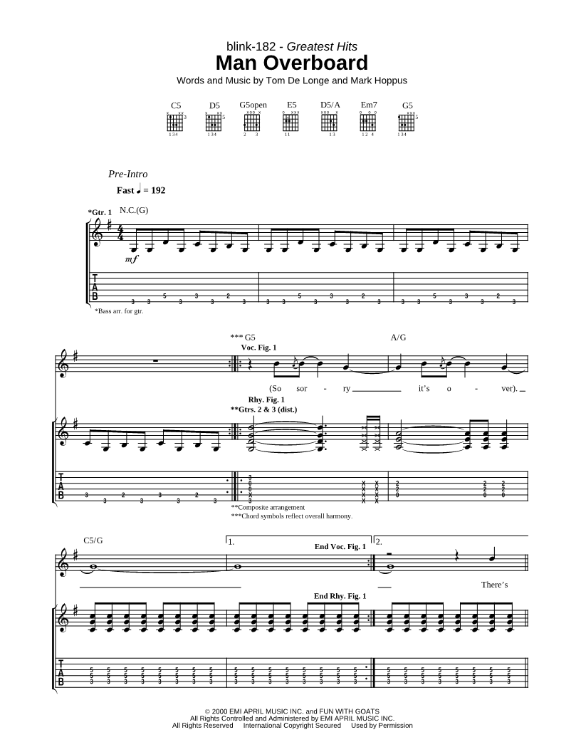Guitar TAB Guitar/Vocal |