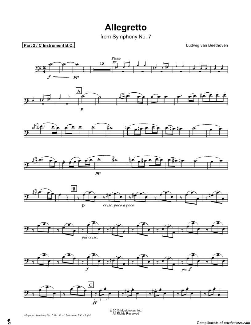 Allegretto from Symphony No. 7 - Bass Clef C Instrument (Part 2) |