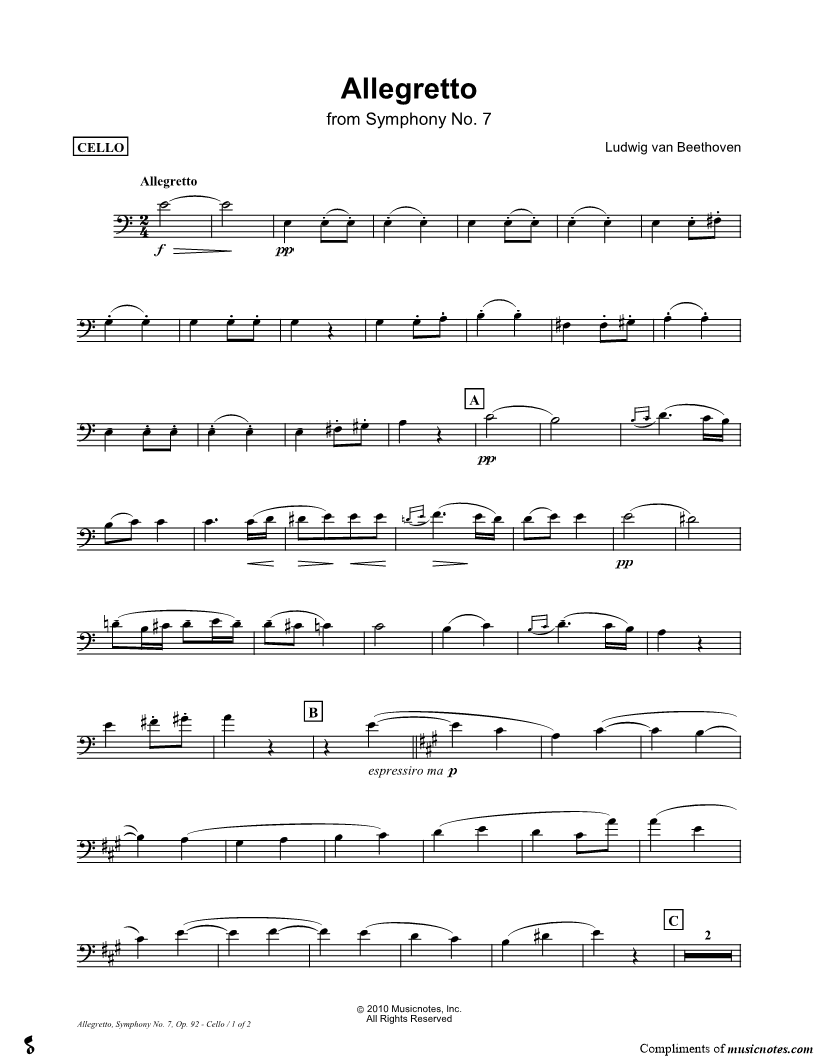 Allegretto from Symphony No. 7 - Cello Solo |