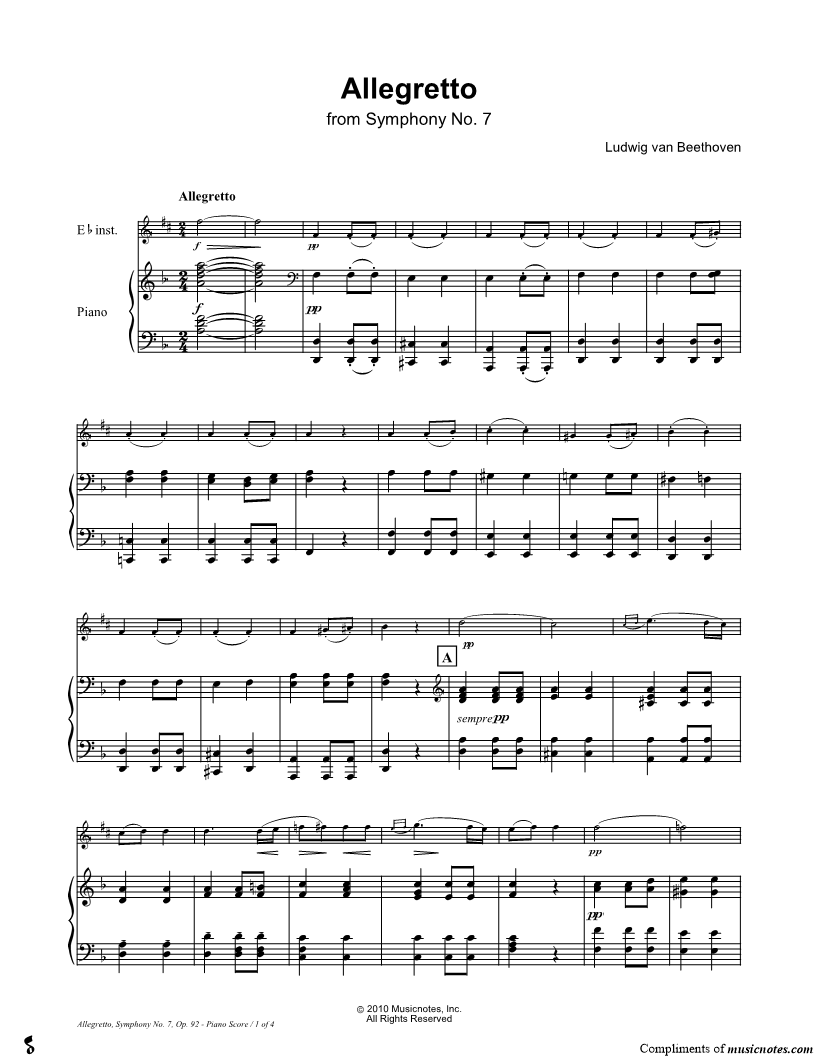Allegretto from Symphony No. 7 - Piano Accompaniment (Eb Instrument) |