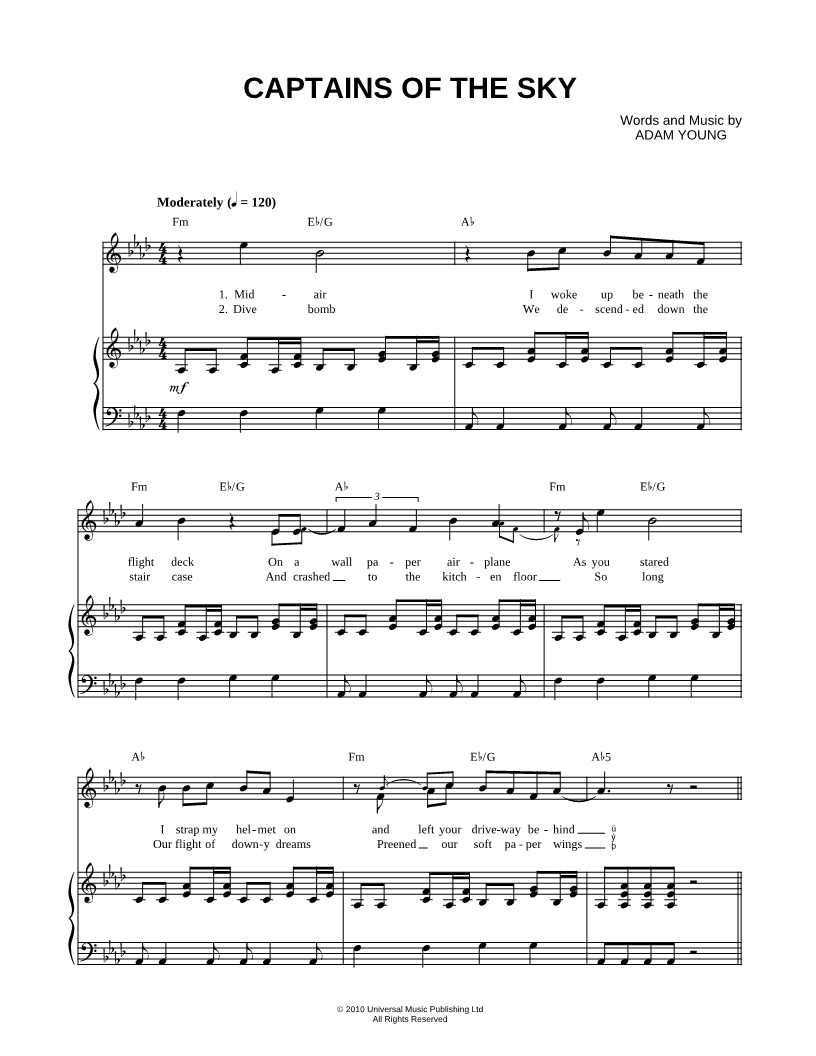 Midair I woke up beneath the flight deck On a wall paper airplane As you stared I strap my helmet on and left your driveway behind @ @ Flutter all through the night |