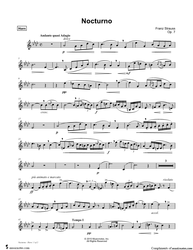 "Hi quality resolution. Horn sheet music without accompaniment, easy to ready."