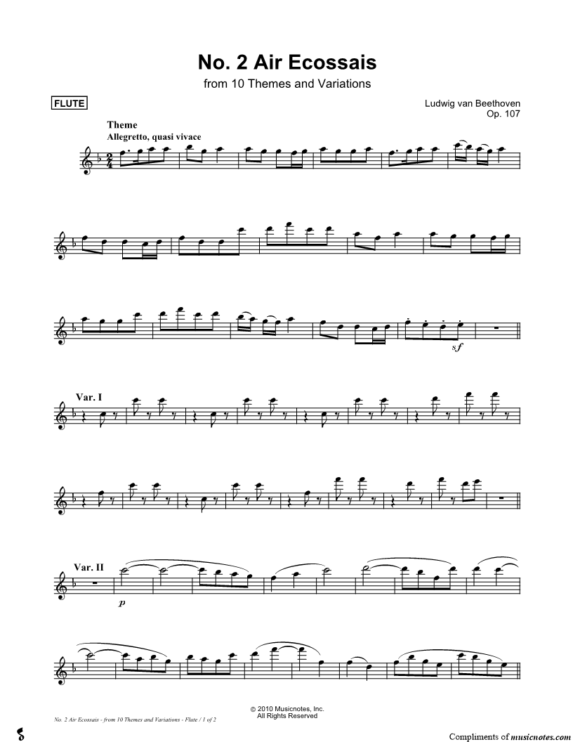 Air Ecossais, Op. 107, No. 2 - Flute & Piano from 10 Themes and Variations