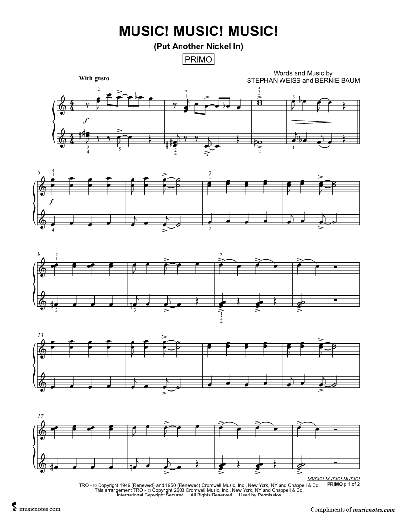 Musicnotes sells a wide variety of digital sheet music products including Singer Pros, Beginner Notes, Choral music, Piano Solos, Lead Sheets, Piano/Vocal/Guitar, Solo and Accompaniment, and fretted instrument tablature.