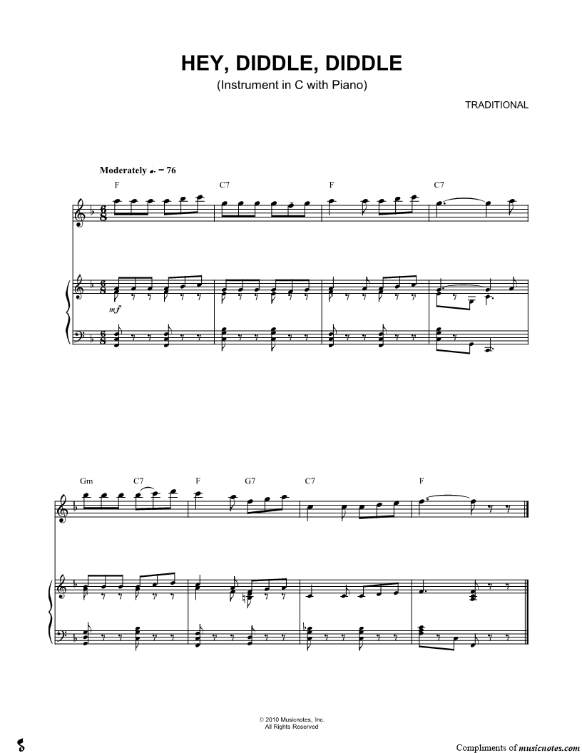 Hey Diddle Diddle - C Instrument & Piano