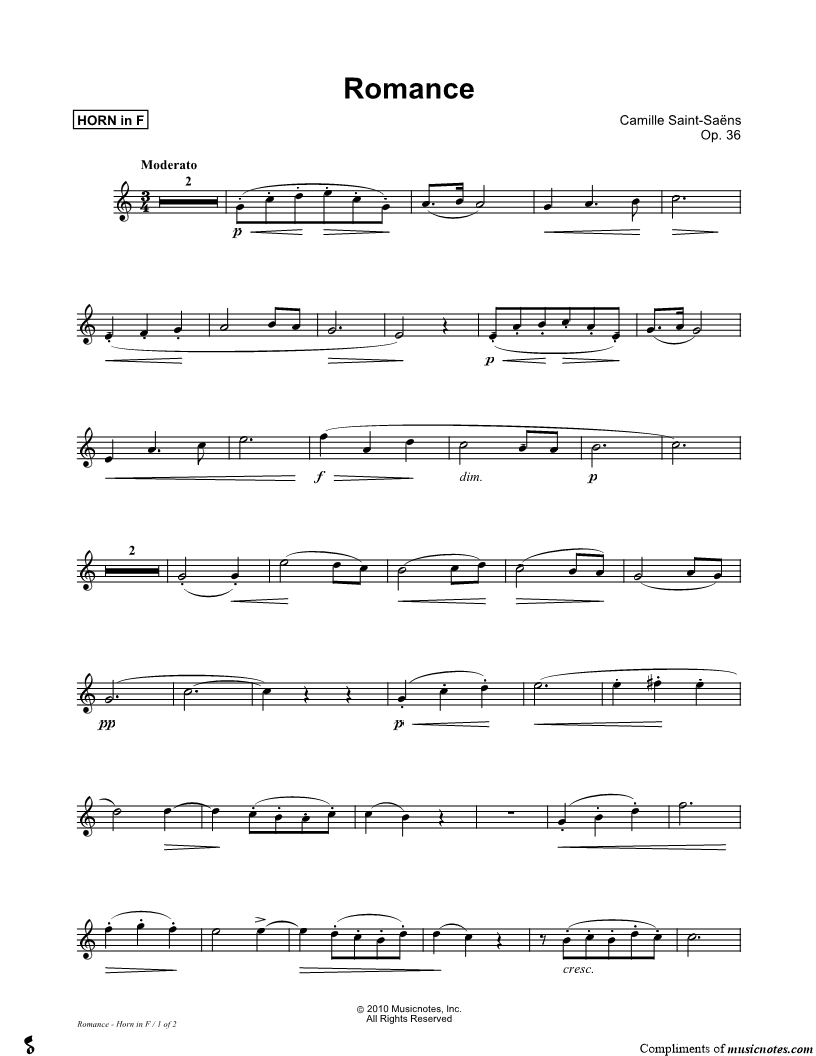 Romance, Op. 36 - Horn Part |