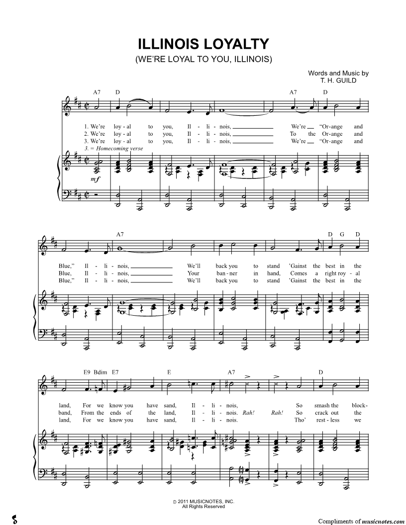 We're loyal to you Illinois, We're "Orange and Blue," Illinois, |