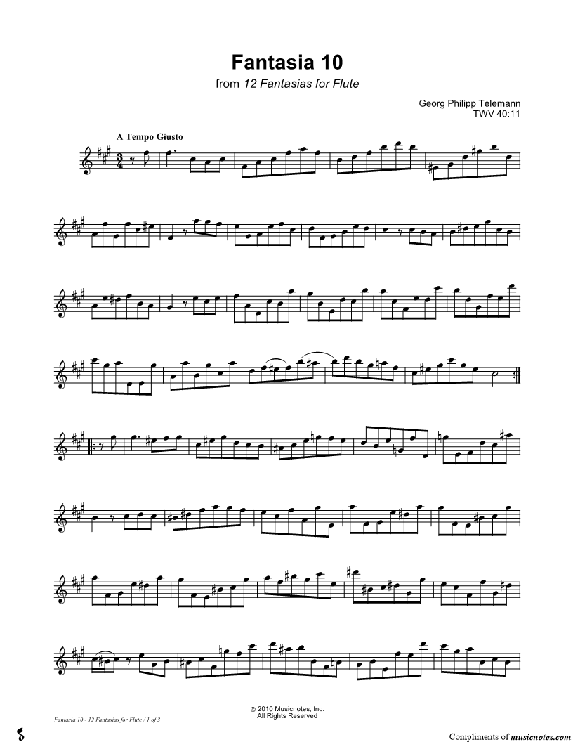 12 Fantasias for Flute: 10. Fantasia in F# Minor |