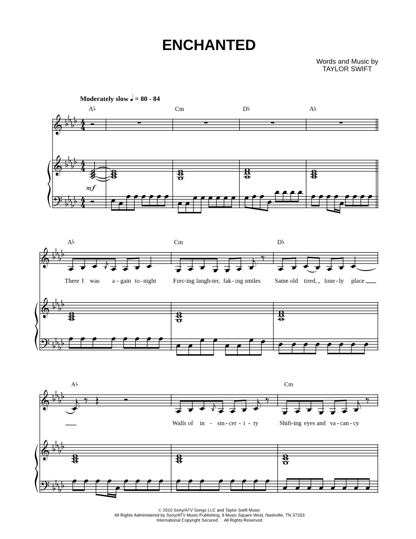 There I was again tonight Forcing laughter, faking smiles Same old tired, lonely place Walls of insincerity Shifting eyes and vacancy Vanished when I saw your face All I can say is it was enchanting to meet you Your ey |