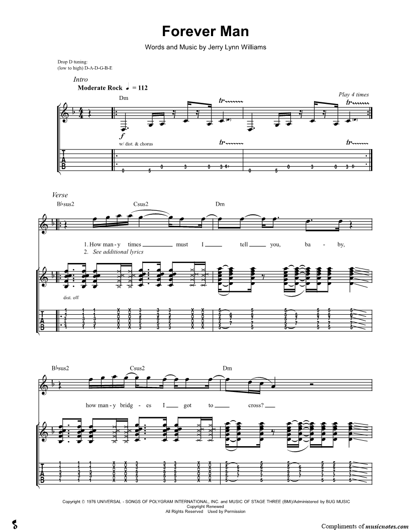 Guitar Tab Guitar/Vocal |