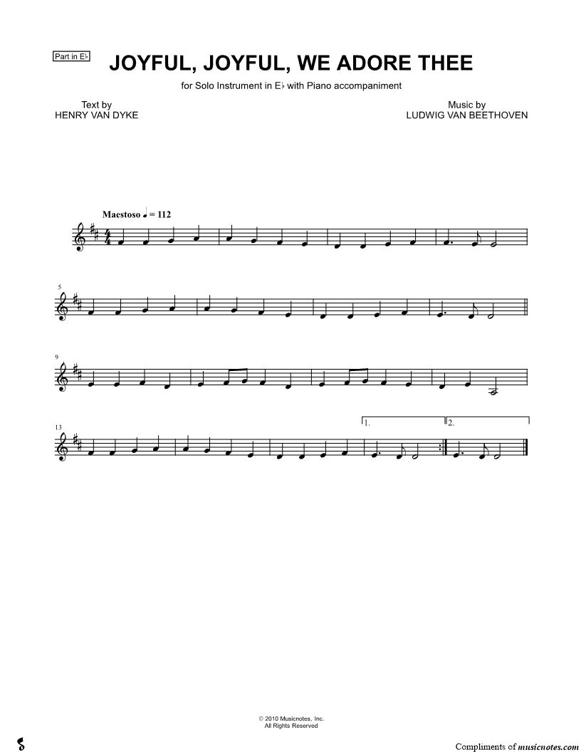 Joyful, Joyful, We Adore Thee - Eb Instrument |