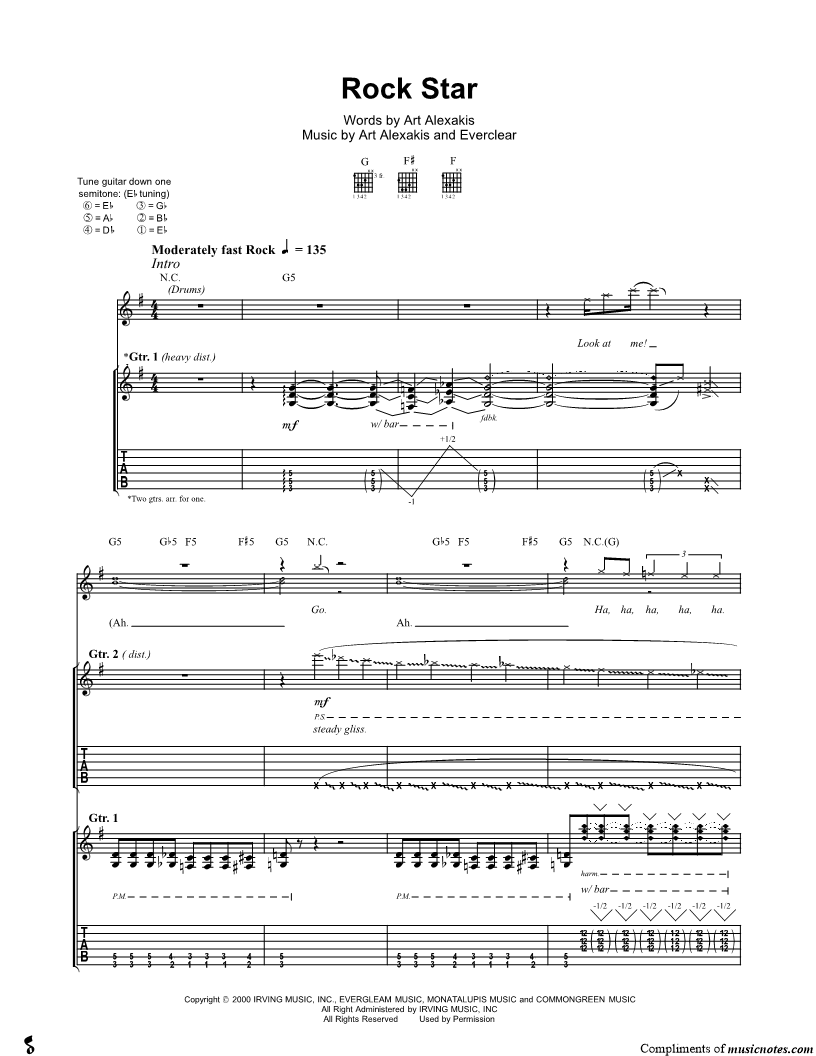 Voice, range: D4-D6 Guitar 1 Guitar 2 Guitar 3 Backup Vocals | |