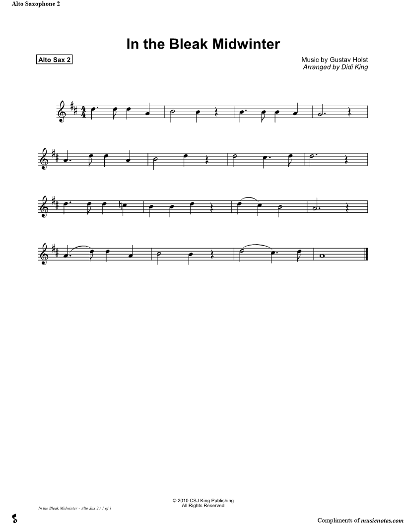 In the Bleak Midwinter - Alto Saxophone (Part 2) |