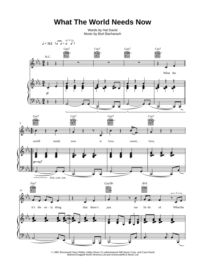 What the world needs now is love, sweet love, it's the only thing that there's just too little of. |