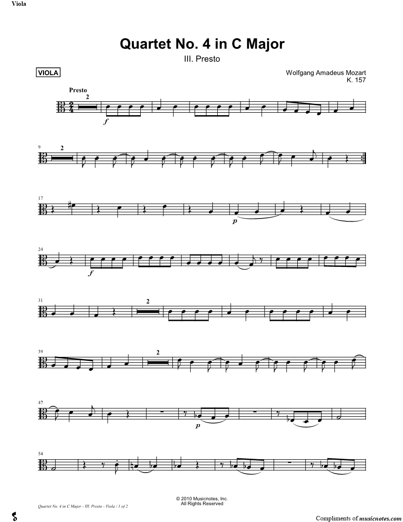 Quartet No. 4 In C Major, K. 157: III. Presto - Viola Part (String Quartet) |